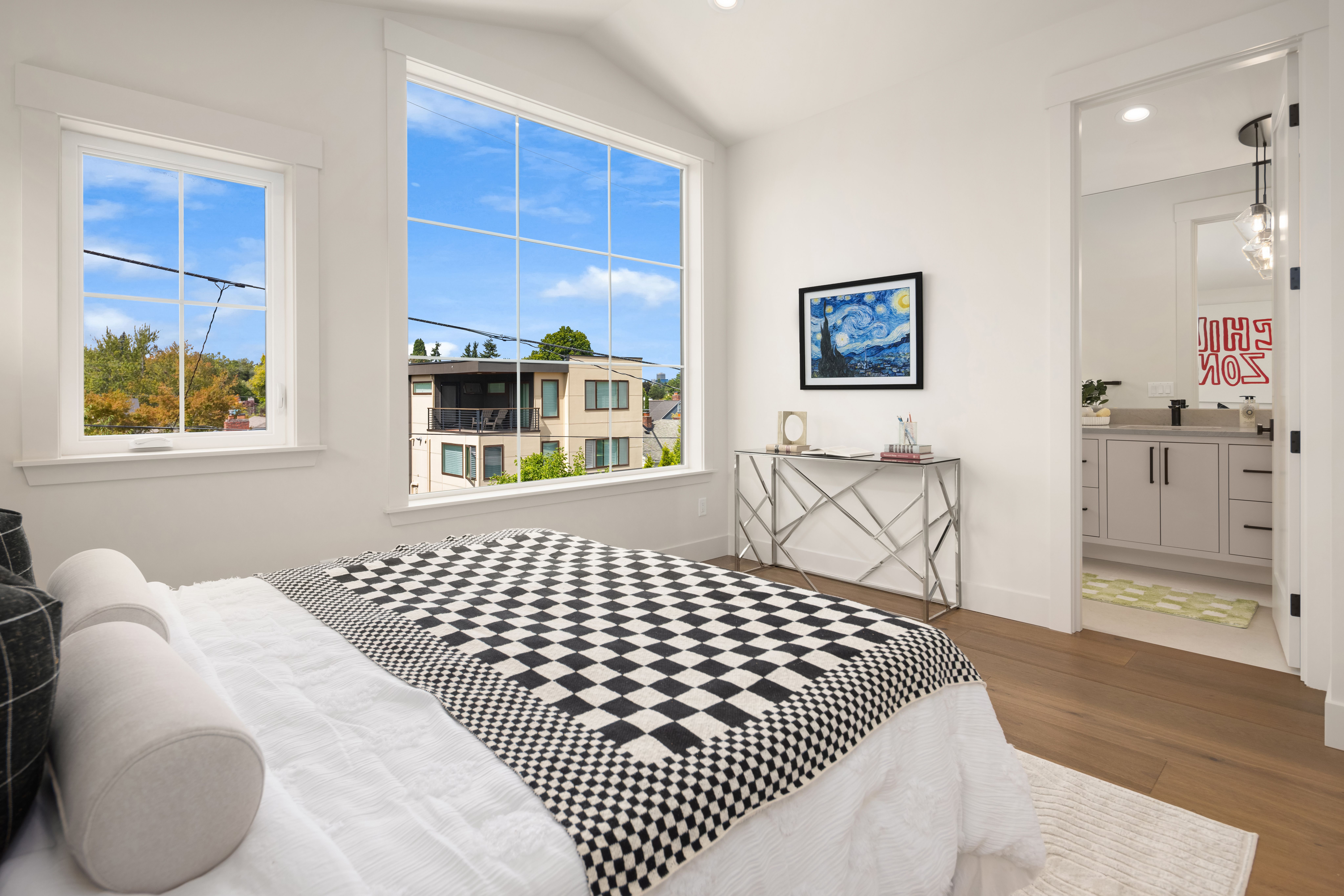 Modern 4-bed, 3.5-bath home in the heart of Madison Park featuring 3,503 sq ft of luxury living. This new construction boasts a vaulted primary suite, open-concept living areas, a dedicated office, media room, and a 2-car garage. Enjoy covered decks, designer finishes, and refined curb appeal—just minutes from Lake Washington, shops, and parks.